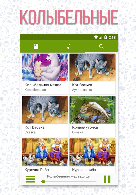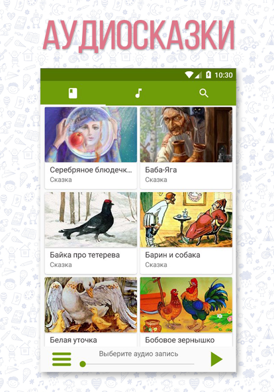Our app will help you simplify the process of putting your baby to sleep. Here you will find a large number of songs and fairy tales, as well as fairy tales in audio format, and everything is absolutely free.