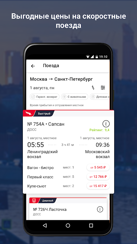 In the “High-Speed Trains” application you can purchase train tickets online, or view the schedule for high-speed trains Sapsan, Lastochka, Strizh, Allegro there and back without registration!