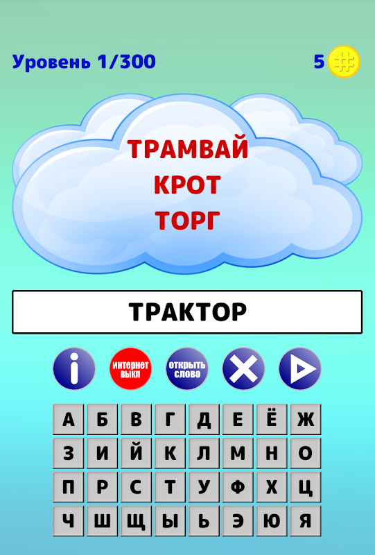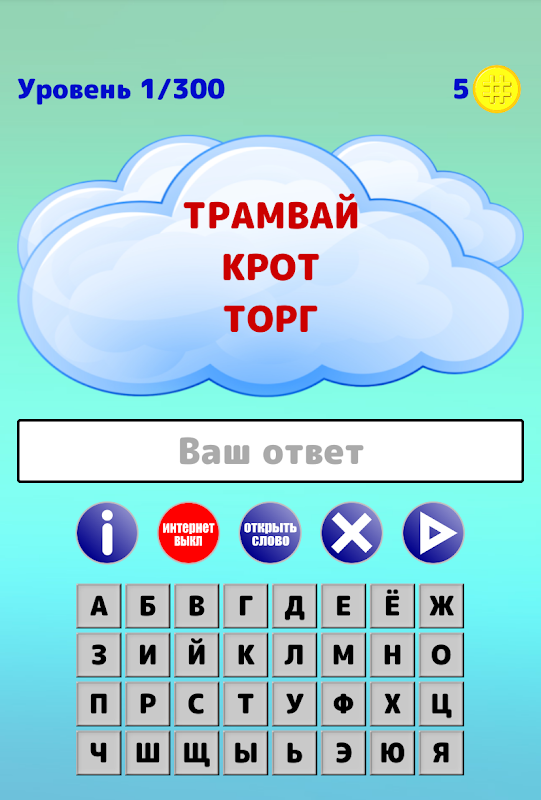 В этой игре вам необходимо составить одно слово из трёх приведённых слов.