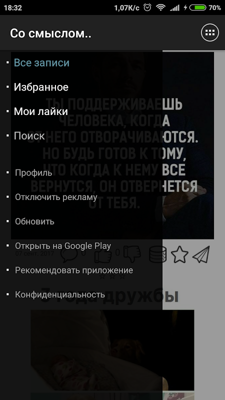 Понравившиеся записи можно комментировать и оценивать. Все понравившиеся картинки можно сохранять в галерее устройства в папке приложения. Ты можешь делиться записями с друзьями через социальные сети, а так же другие установленные на устройстве приложения. Ну и конечно, ты можешь оставлять лайки и сохранять записи в избранное.