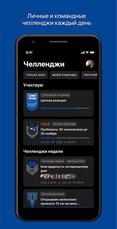 - Personal challenges. Challenge yourself, accumulate charges and get bonuses.