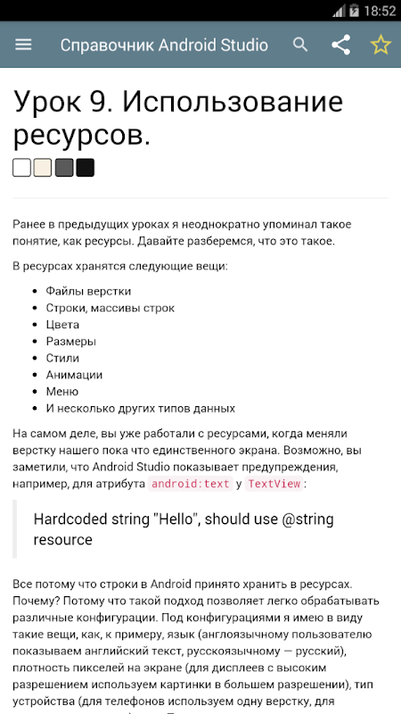Приложение позволяет Вам иметь в кармане справочник для разработки приложений под Android. Ориентированный на начинающих и продвинутых разработчиков.
