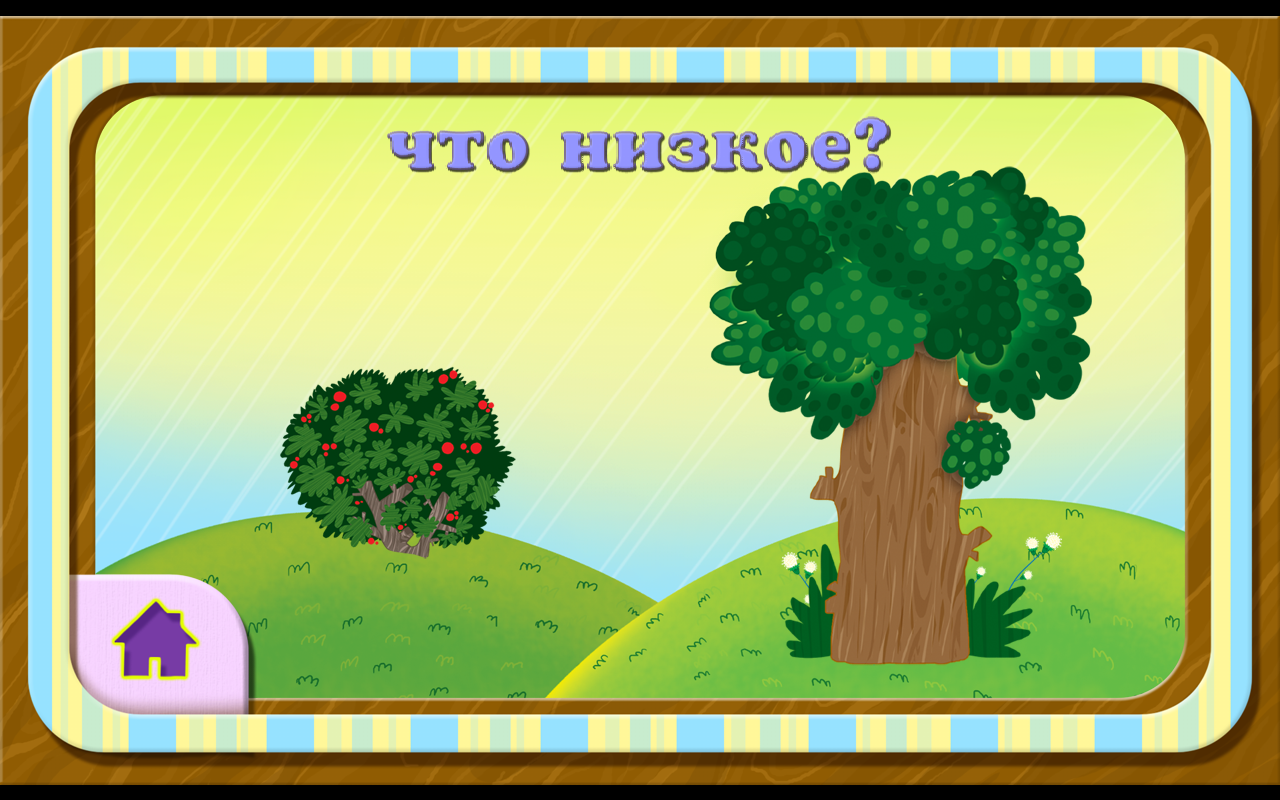 В режиме «Играем в сравнения» вашего ребёнка ждут увлекательные задания на закрепление умений определять противоположные свойства предметов. Например, нужно посадить маленького мышонка в низкий домик, а большого медведя в высокий дом, или расставить зверят по росту — от самого высокого зверя до самого низкого.