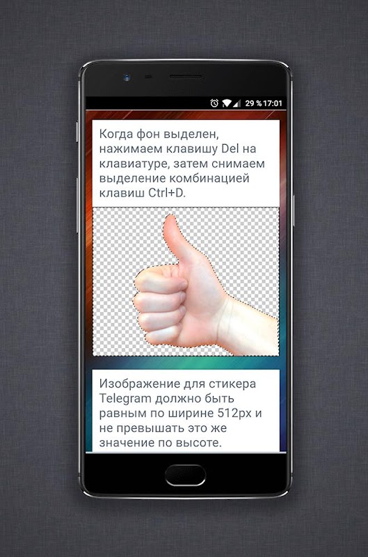 Following the step by step animated instructions and you will be able to make a sticker for telegrams from the pictures alone.