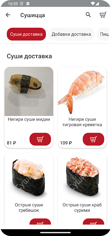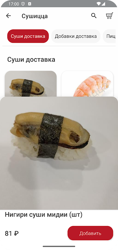 Мобильное приложение Сушицца - служба доставки еды в Ленинградской области. В приложении есть возможность ознакомиться с меню доставки, из которого вы сможете выбрать блюдо на любой вкус. В нашем ассортименте есть пицца, роллы, суши, горячие и холодные блюда, и многое другое.