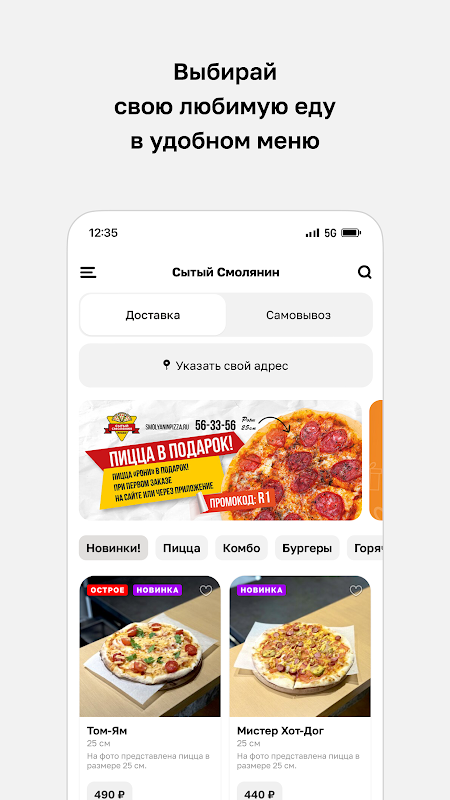 "Syty Smolyanin" is a simple and convenient application for ordering food delivery.