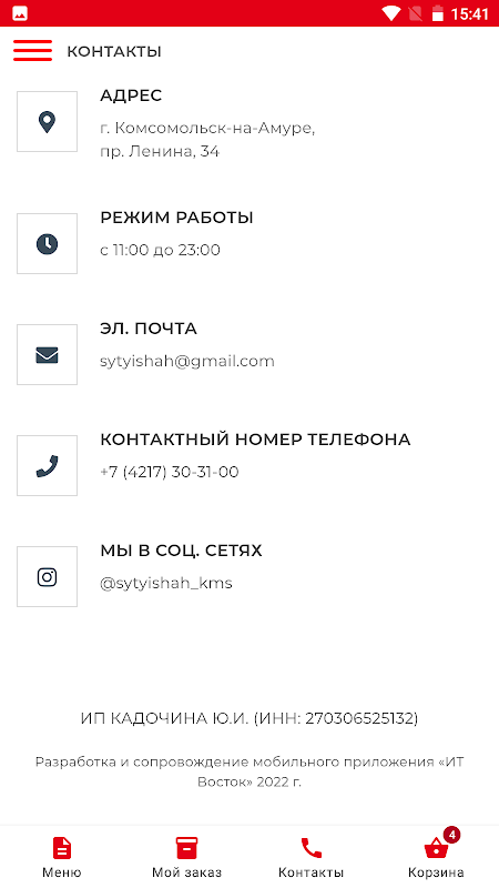 Оформите заказ на доставку или самовывоз в кафе Сытый Шах в городе Комсомольске-на-Амуре
