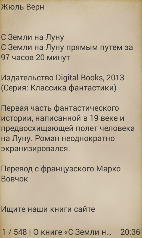 Digital Books publishing house is engaged in popularizing works of classical literature and supporting beginning authors. We publish books in the form of applications for mobile devices based on the Android operating system. Using a simple menu, each reader can customize the display of the book to suit the characteristics of their device.