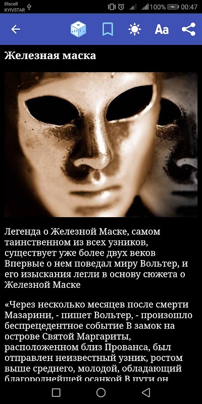 The Secrets of the World application contains about 100 articles about the mysteries of the world and humanity, which can also be shared with friends. The collection contains secret and mystical phenomena, mysteries of history, the great secrets of the world, mysteries of nature and much more. Each article is accompanied by illustrations.