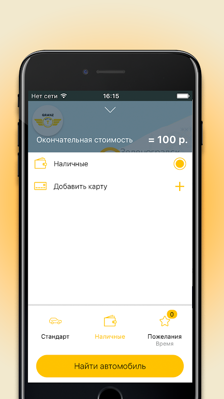 Book a taxi on the Kaliningrad region and the city of Zelenograd application.