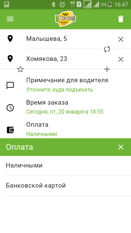 Application for taxi "Lemon Tree" in Ekaterinburg