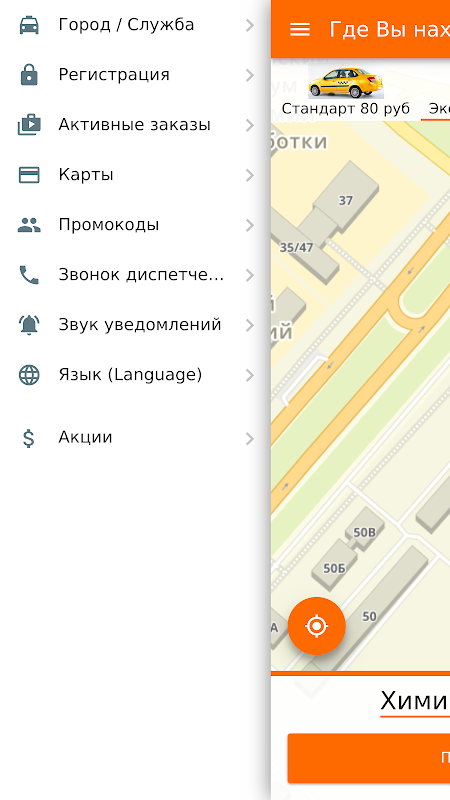 • Возможность вызвать такси разного класса (Эконом, Комфорт, Бизнес).
