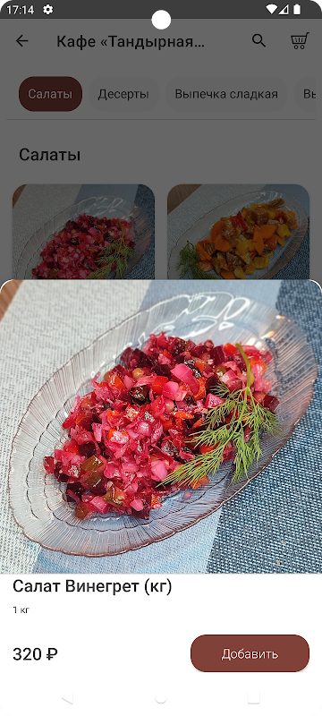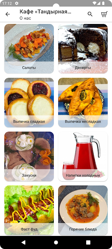 Супы, гарниры, горячие блюда, салаты, выпечка, десерты, пицца, хот-доги, бургеры, шаурма, закуски, хлеб и лепешки из тандыра.