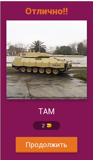 Для того, чтобы пройти уровень, тебе надо внимательно изучить изображение и угадать название боевой машины. В вопросах содержится подсказка, как правило это принадлежность к определенной стране. Угадав название танка, ты открываешь новый уровень в викторине. С каждым обновлением количество уровней будет увеличиваться. Данная версия игры исполнена на русском языке.