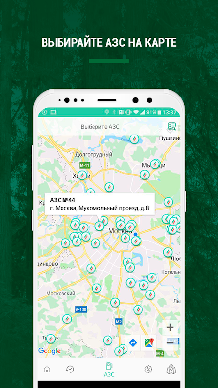 • получать информацию о реализуемых видах топлива, ценах и услугах на станциях;