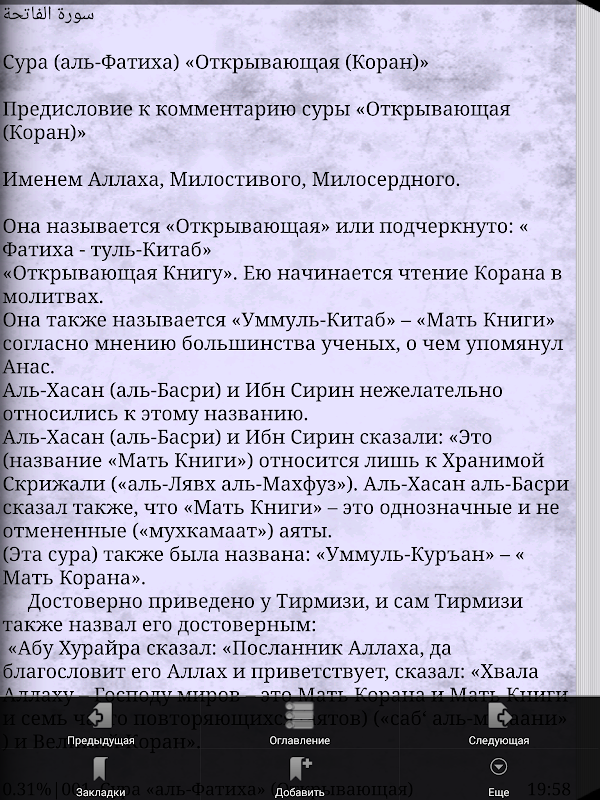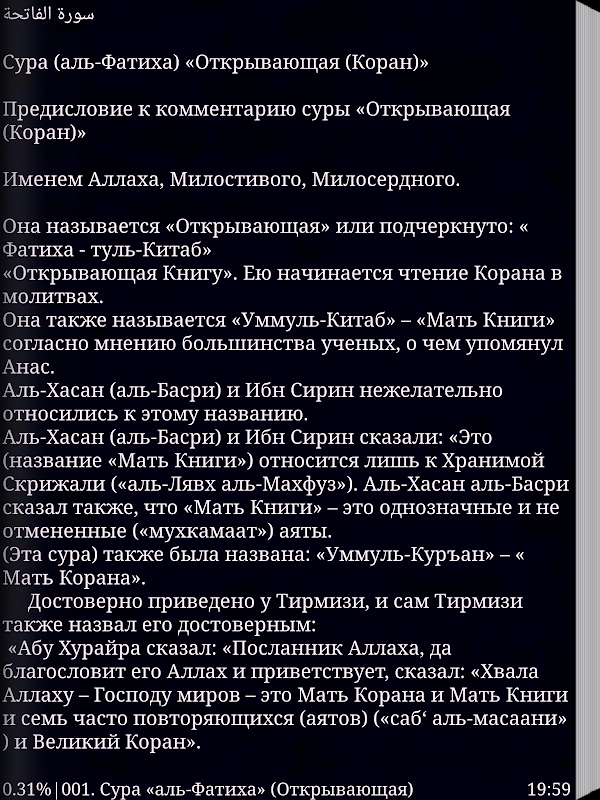 Praise be to Allah, who facilitated this work for us and bestowed health, intelligence and strength for the translation of this great and fundamental for the Islamic Ummah “Tafsir”. The commentary on the Qur'an, Hafiz ibn Qasir al-Dimashka “Tafsir al-Kur'an al-'Azim (Interpretation of the Great Quran)” is very voluminous and therefore it can be safely called the “Encyclopedia of the Qur'an”, it contains many repetitions, as well as reliable and well-known hadiths, links to false stories, stories and hadiths. It is also intended, as a rule, for students of religious institutions who study this work with Sheikhs-Mufassirs, who are knowledgeable in tafsir issues and are able to explain the subtleties of certain contradictions in interpretation. Therefore, scholars reduced this work by eliminating repetitions, unreliable hadiths and traditions from it, simplifying it and making it more accessible for the ordinary Muslim to understand. There are several versions of Mukhtasar (Acronym) Tafsir Ibn Qasir. The most common and used by us is (المصباح المنير في تهذيب ابن كثير) Al-Misbah al-Munir fi Tahzib ibn Qasir Sheikh Safi Rahman Mubarakfuri, with the revision of the Hadith Shayir nadmom al-Abdul Abd al-Abdul. Also (عمدة التفسير عن حافظ ابن كثير) “Umda At-Tafsir an Hafiz ibn Qasir”, with the verification of hadiths by Sheikh Ahmad Shakir, (صحيح ابن كثير) “Sahih ibn Kassirim naymawh dahim namuh al-dawi Allah), while also working, we referred to the “Mukhtasar (Abbreviation)” of Tafsir Ibn Qasir Sheikh al-Sabuni (may Allah have mercy on him). Therefore, the translation can hardly be called a translation of the full Tafsir Ibn Qasir, although in principle such a task was not set initially. Distinctive features of the abbreviated (mukhtasar) versions (of the above sheikhs) are that unreliable hadiths are excluded from them, but the meanings of the interpretation of all verses, the interpretation of them by other verses, reliable hadiths, and the statements of some scholars of that time are preserved. Also, the feature of “Mukhtasar (abbreviated) Tafsir” is that the complete isnad (chain of transmitters) of one or another hadith is not always indicated in order to simplify the reading, but the last transmitter is indicated or where the hadith is given. When translating the verses of the Qur'an, we used in general the translation of Elmira Kuliev, which is the most widespread and popular among Russian-speaking Muslims. When interpreting the verses themselves, almost all the translations of the Koran available today, such as the translation of Dr. Abu Adel, Nuri Osmanov, Academician Krachkovsky, Sablukov, etc., were used in order to more fully and correctly display the acceptable versions of the translation, guided by the existing classical interpretations of the Koran such as the tafsir Tabari, Kurtubi, Bhagavi, etc., because not everywhere Kuliev’s translation reflects the whole politra of possible interpretations, but only one of the accepted versions of the interpretation of the Holy Quran is transmitted. It should also be mentioned that in this work the reader will meet almost the majority of hadiths already translated into Russian, and many hadiths that have been translated into Russian for the first time.