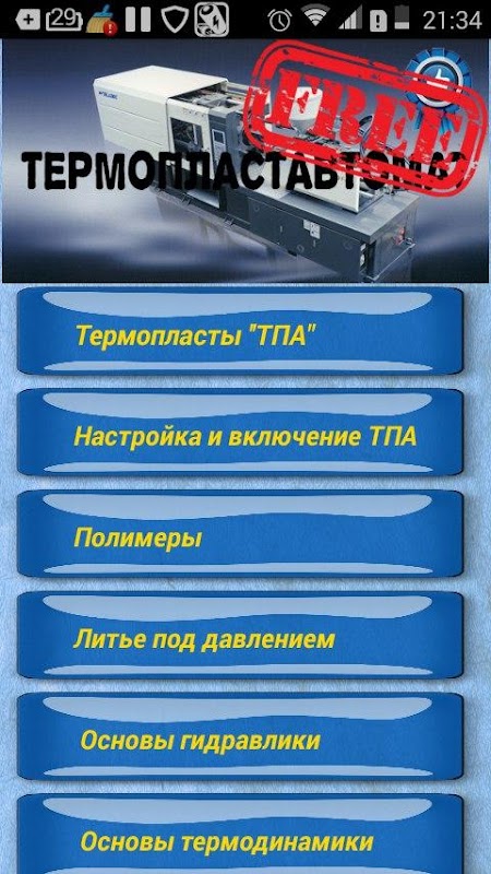 Introductory handbook on termoplastavtomatov.Tak settings can also be used as a textbook for molding plastic under davleniem.Prilozhenie has a complete informative base necessary when working with TPA.