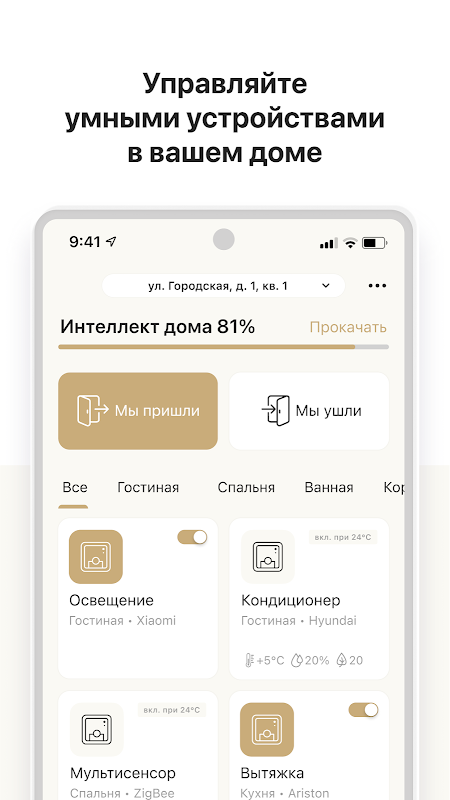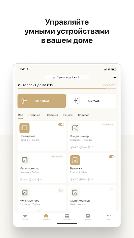 • Manage the Smart Home system in your apartment from anywhere in the world. Expand the functionality of the system by ordering additional packages and individual devices from different manufacturers.