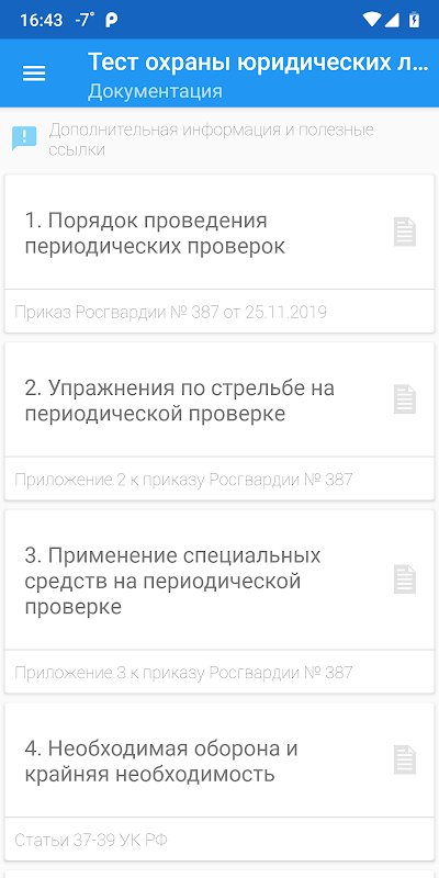 - тестирование работников ведомственной охраны в режиме периодической проверки