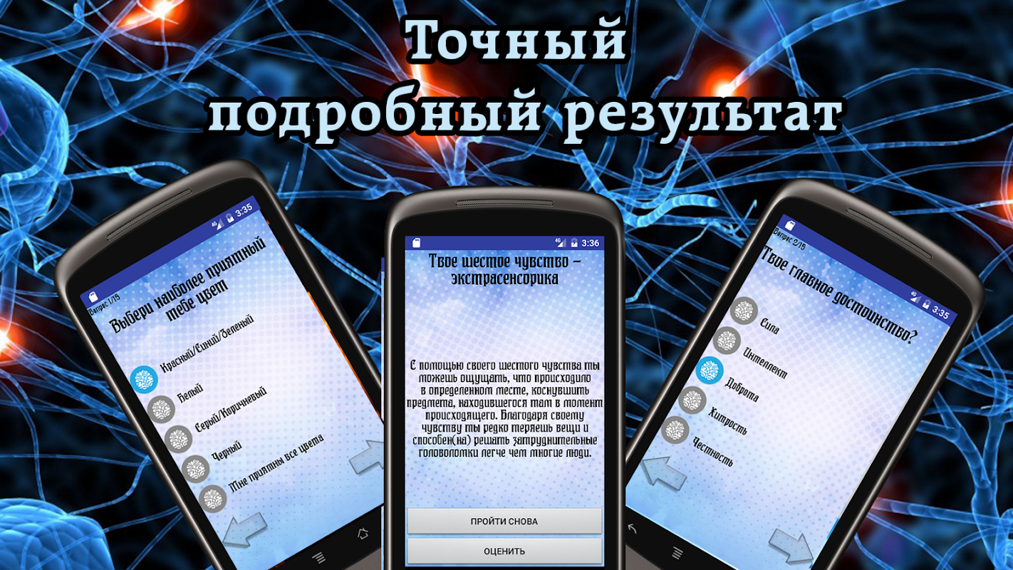 Данный тест не похож на тест на имя парня или девушки, на тест на любовь, имя, стихию. Этот тест викторина, позволяющая определить Ваше шестое чувство.