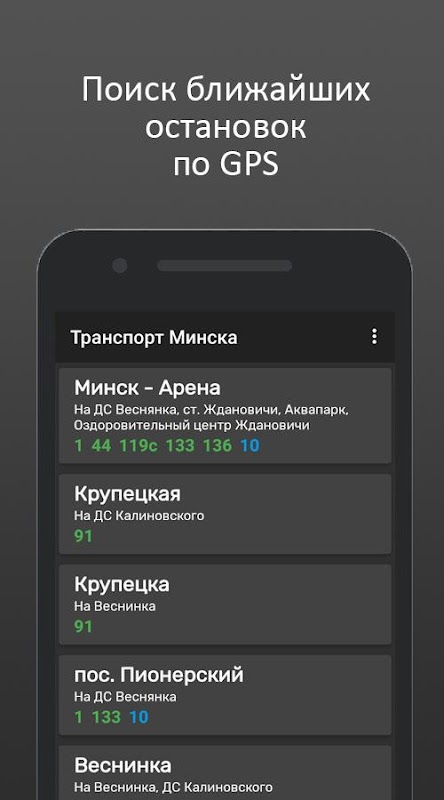 В приложении реализован поиск ближайших остановок по данным GPS, что в большинстве случаев позволяет заметно быстрее находить нужную остановку.