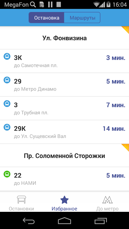 Важные остановки и маршруты можно добавить в Избранное и получать нужные расписания в одно касание.