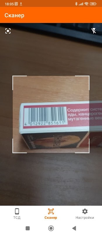 Allows you to scan a bar code when sold at the checkout or when receiving goods. Work is done inside the local network. Please make sure that you have a network configured and also have WiFi connection before use.