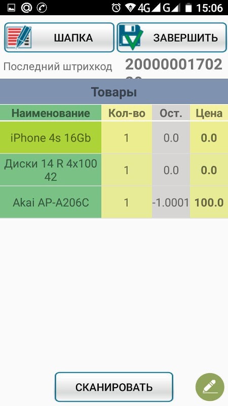 It is intended to create documents by scanning the barcode and send to the accounting system "MoySklad"