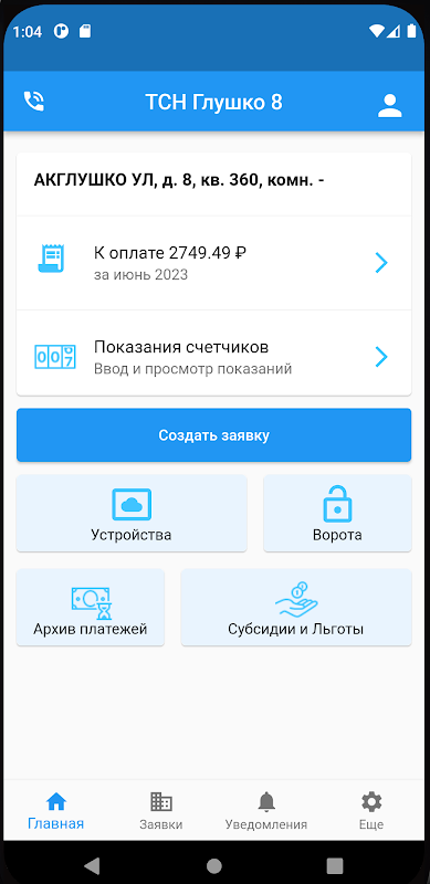 Convenient viewing of the history of accruals and payments. Entering meter readings.