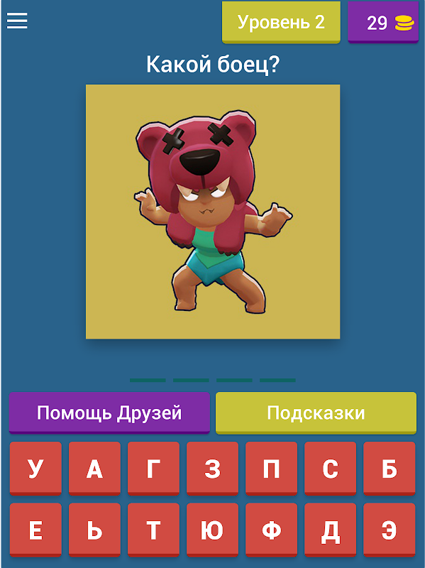 Правила просты: вы угадываете своих любимых бравлеров по картинке из букв, которые надо составить в определенной последовательности, чтобы получилось нужное вам имя. Если затрудняетесь ответить, то всегда можете воспользоваться подсказками!;)
