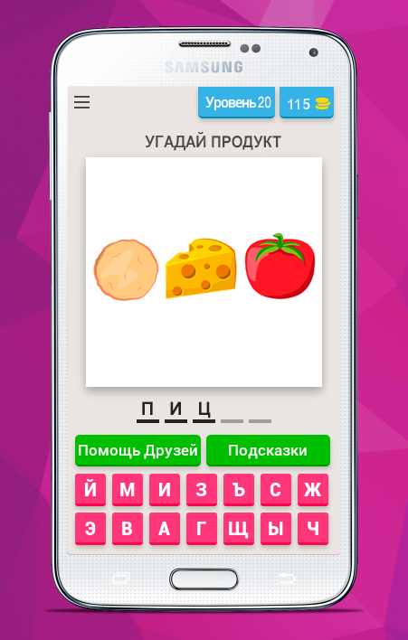 Посмотри на смайлики и отгадай слово, которое их объединяет. Это может быть бренд, напиток или просто любимый продукт. Впиши название вкусняшки выбрав нужные буквы и заработай монеты, а если не можешь вспомнить товар, воспользуйся подсказками или попроси помощи у друзей, угадайте еду вместе.