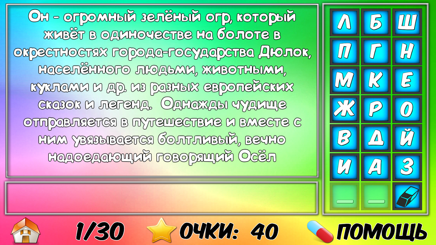 Игра понравится любителем мультфильмов, фильмов, головоломок, ребусов и викторин. Интересно будет играть как взрослым, так и детям.
