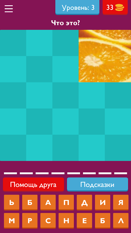 Необходимо угадать изображения, запечатленные на картинках и спрятанные под квадратными плитками. Это может быть всё что угодно: фрукты, фастфуд, спортивный инвентарь, инструменты и так далее. В игре предусмотрена система подсказок. И не забудь, чем меньше плиток откроешь, тем больше монет заработаешь.