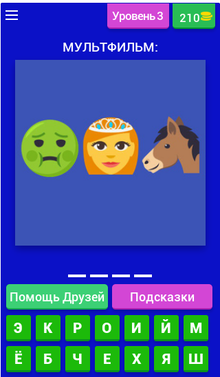-На картинке из смайлов зашифровано слово, оно может быть любое: фильм, мультфильм, персонажи, блюда, бренд и т.д. Вам предстоит угадать его, подобрав подходящие буквы.