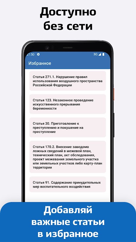 Please note that the “Criminal Code of the Russian Federation 2025 - Criminal Code” is an independent application and is not associated with any government bodies of the Russian Federation. This application provides information about the Criminal Code of the Russian Federation in a user-friendly form and is intended for informational purposes. We make every effort to ensure that the information provided is current and accurate, but all users should understand that their sole responsibility for the use of the information provided lies with them. For official information and legal advice, it is recommended that you contact qualified professionals.