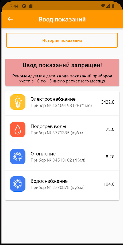 Convenient viewing of the history of accruals and payments. Entering meter readings.