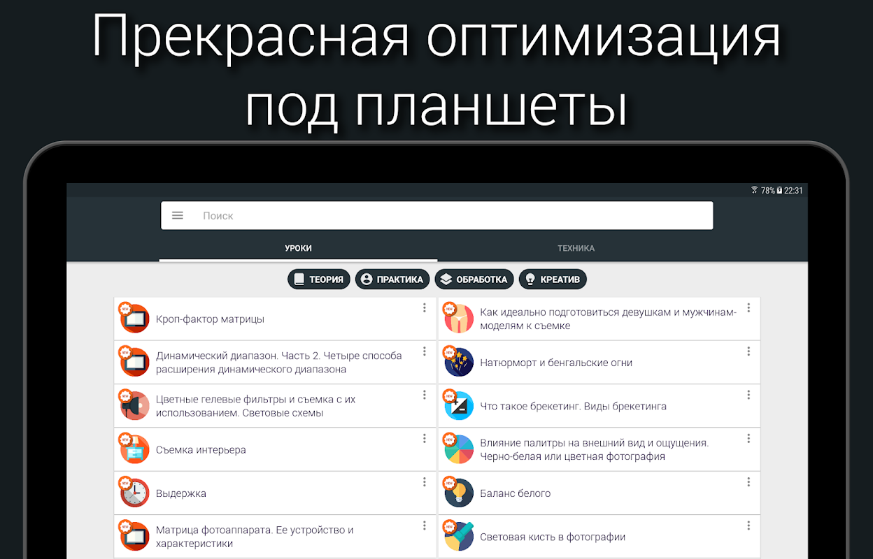 We have created the most convenient and minimalistic interface so that you can focus on the main thing - on the material and photos.
