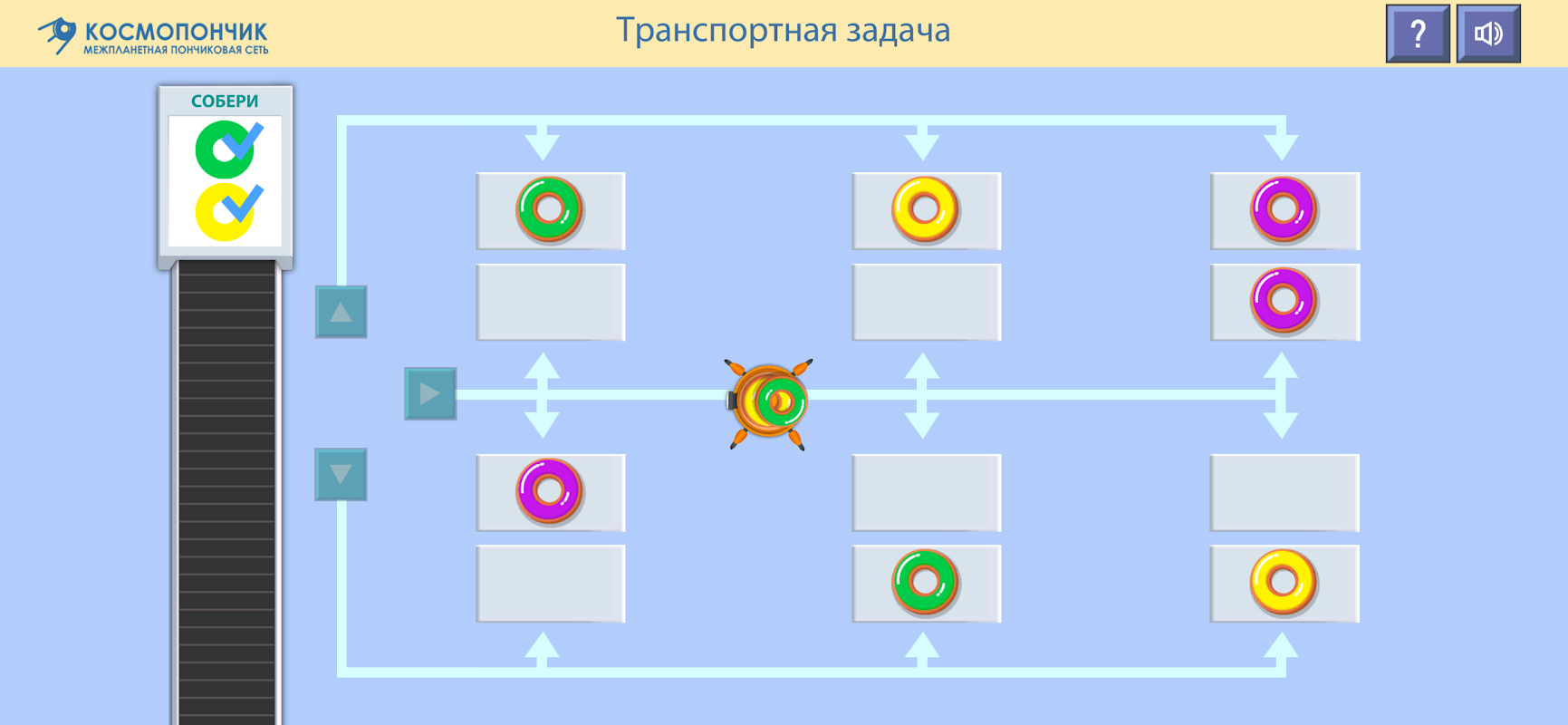 The guys will find answers to these and many other questions during their trip to Cosmoponchik. In their arsenal - attentiveness, intelligence, ingenuity and the ability to ask the right questions and find answers. The simulator - aka the virtual simulation of "Cosmoponchik" - is divided into nine tasks. The youngest children only need to go through the first three - and solve the problem of overproduction of donuts, tormenting the Director. Older or more inquisitive "cosmocabans" will go further - and turn the factory into a leading enterprise in their Galaxy!