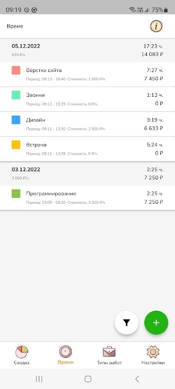 Учёт времени почасовой оплаты 1.0.9