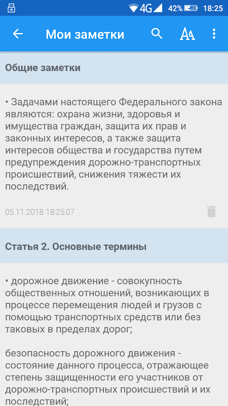 Приложение представляет собой удобный справочник по Федеральному закону РФ «О безопасности дорожного движения». Приложение содержит полный текст закона, актуальный на данный момент времени (с изменениями от 27.12.2018, вступил в силу 30.12.2018).