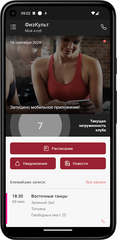 Using the application, you can follow the news, the club schedule, and quickly receive information about changes in the schedule and special offers.