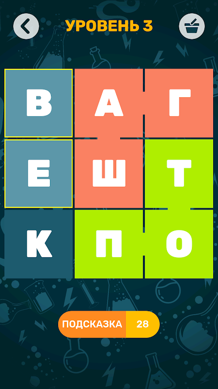 Все, что вам нужно делать - находить загаданные слова на различные темы и эволюционировать от атома до человека.
