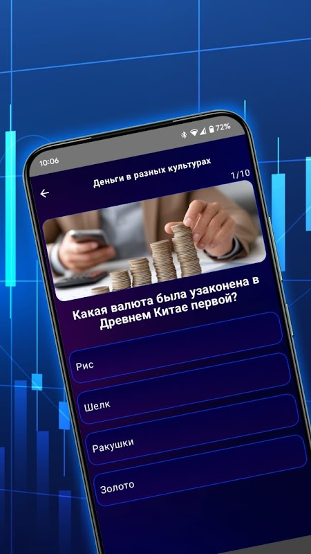 Take a series of well-thought-out tests, check your knowledge level and learn more about the world of money, investments, risks and financial planning. While playing, you can develop useful skills that will come in handy in real life.
