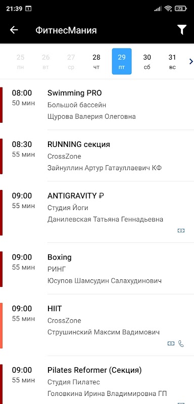 With the app you can follow the news, schedule the studio recording for training and group programs, earn points, to receive information about changes in the schedule and special offers.