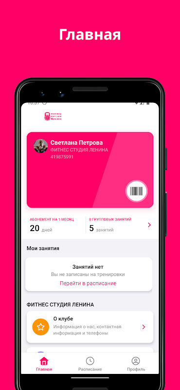 Application for clients of the club "FITNESS STUDIO LENIN"
