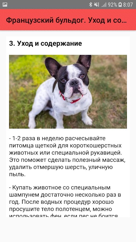 The necessary care for a French bulldog requires certain actions. Before the dog appears, you need to prepare a place for it, and the necessary items in advance. First, the pet is introduced to the new environment, then it is taught to hygienic procedures. The French bulldog, the content of which requires regular care for appearance, is generally unpretentious. But he, like any dog, needs an arsenal of care products: a massage mitt or brush for combing with short teeth. Therefore, care and maintenance are inconceivable without health care.