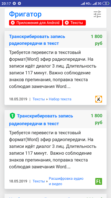 Это приложение агрегатор популярных бирж фриланса в русскоязычном сегменте интернета. Оно позволит исполнителю искать искать себе задания не на нескольких сайтах, а в одном месте - нашем данном приложении.