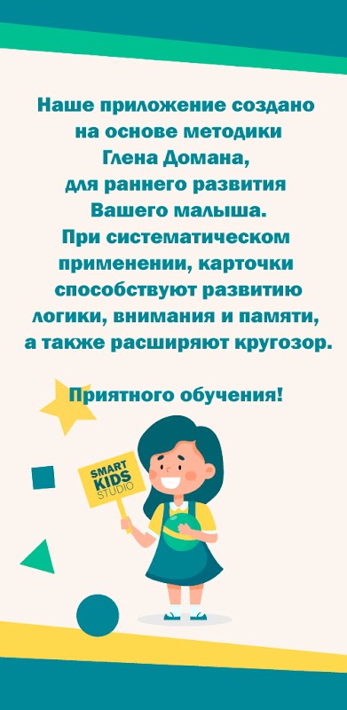 The application was created based on Glen Doman's methodology for the development of your baby.