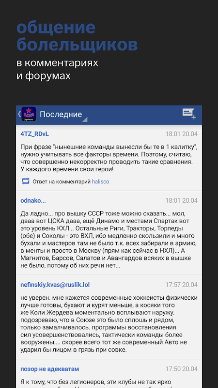 • Записи в блогах о клубе ЦСКА и КХЛ;