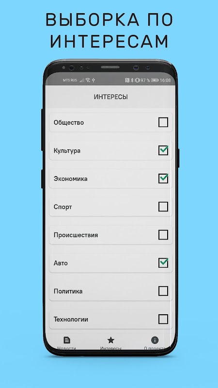 Those who are interested in keeping abreast of the global news agenda will like the convenient and easy interface of the application, as well as the ability to create their own news feed by selecting the categories of materials of interest from the available list of headings.